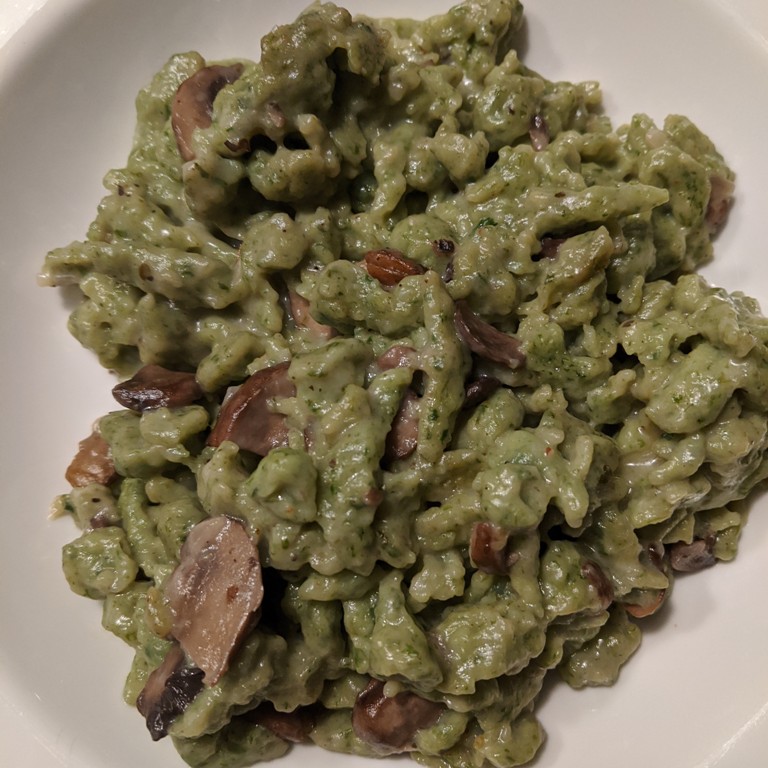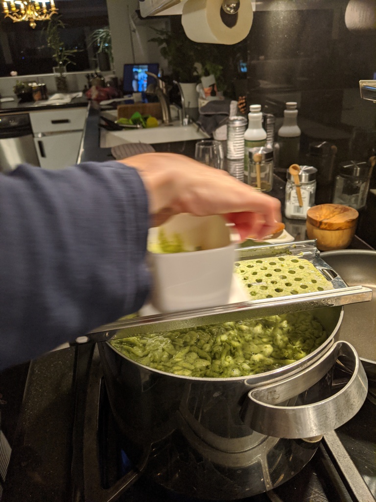 break the spaetzles. Once they looked cooked strain them with the hand strainer