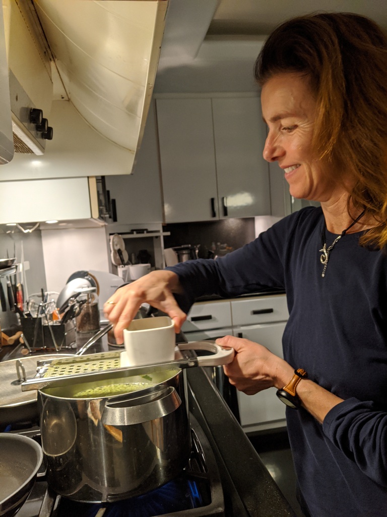 Once boiling use a ladle ( mestolo) and put one or two in the spaetzle tool and