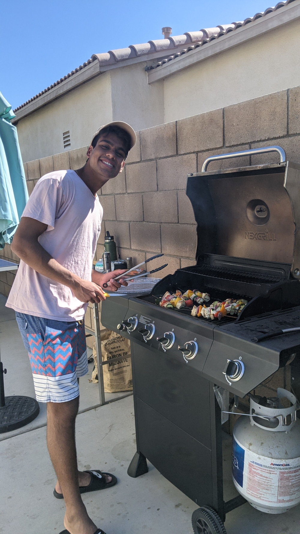 With some chicken skewers on the barbecue...